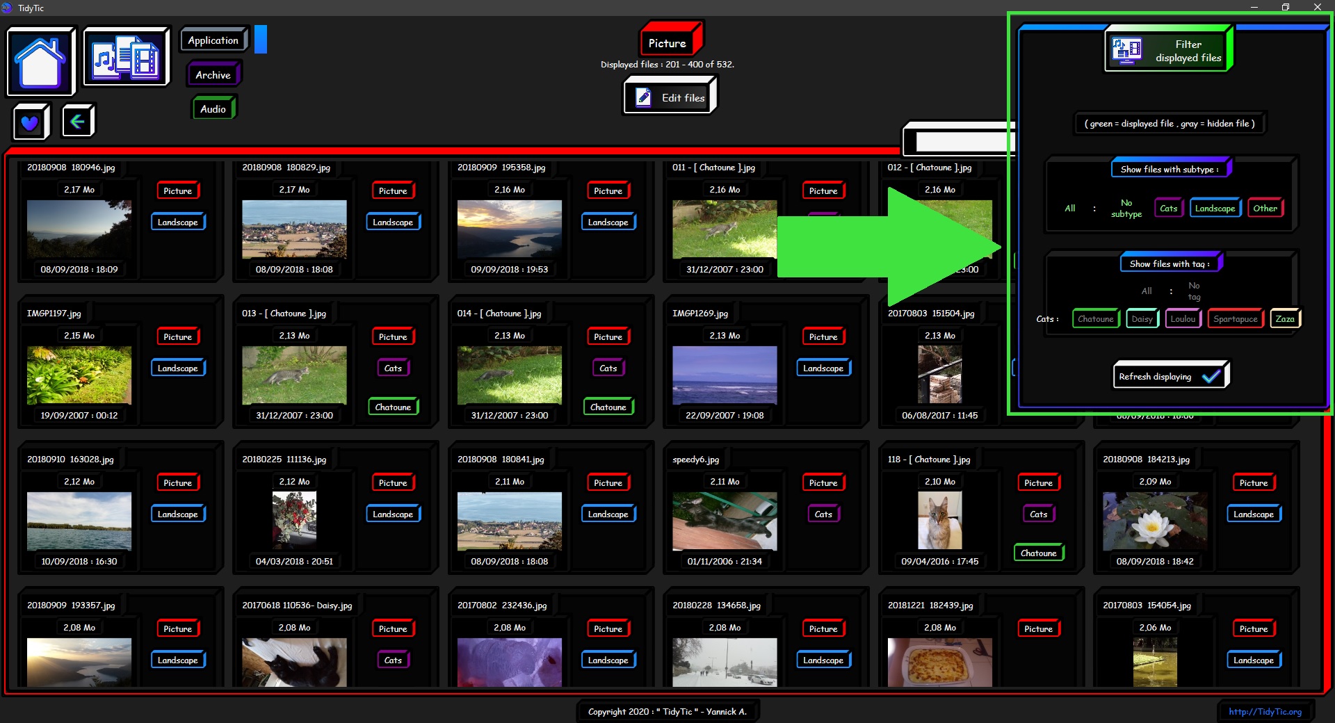 This allows you for example to see all photos that TidyTic has scanned on a single page even if they are scattered on your computer.